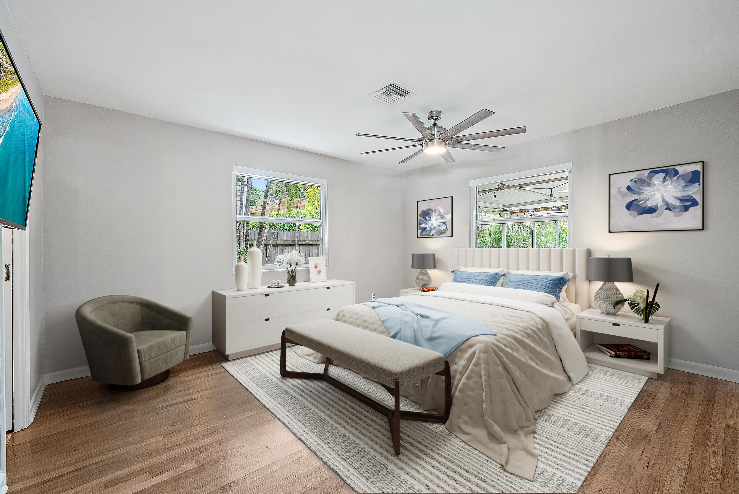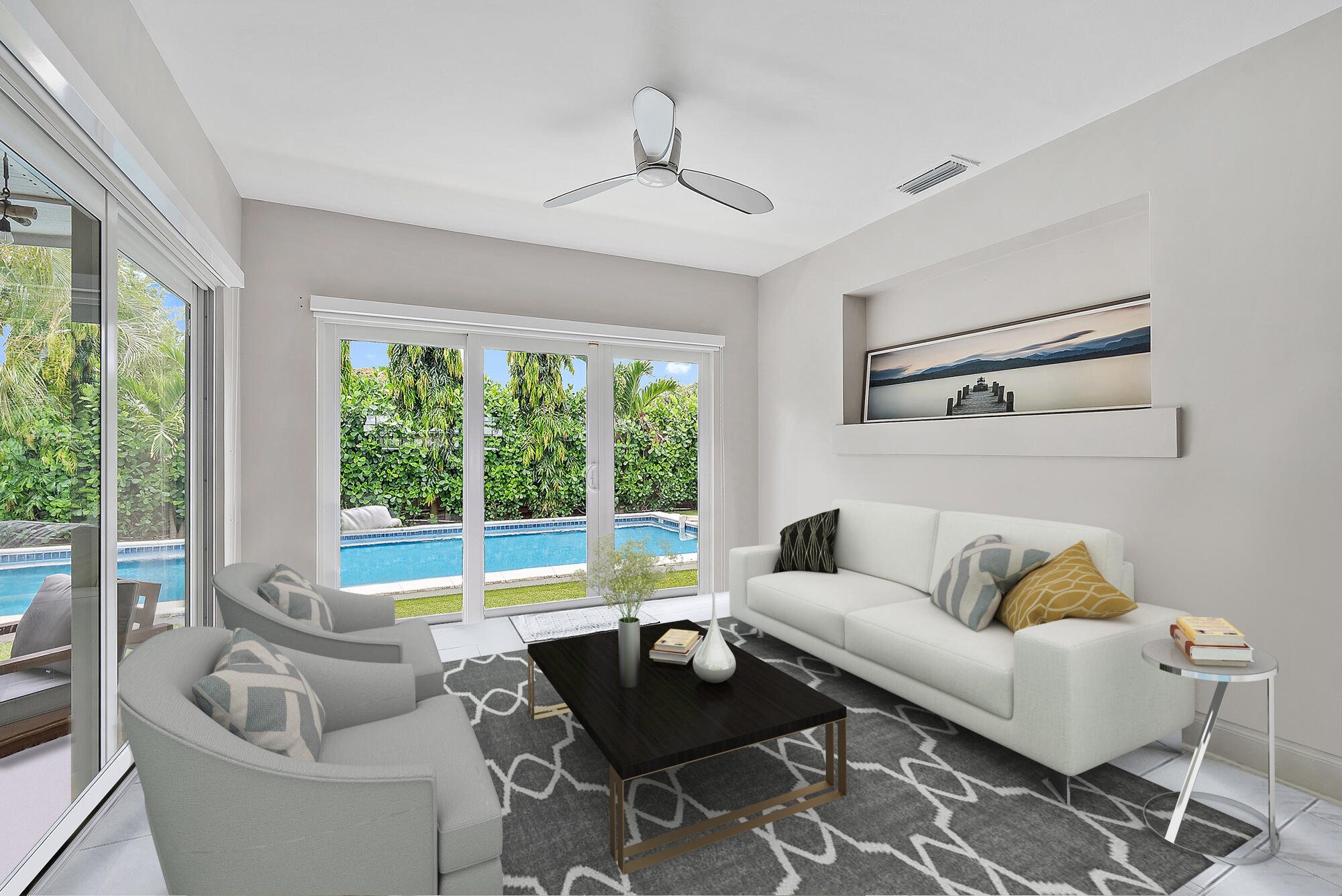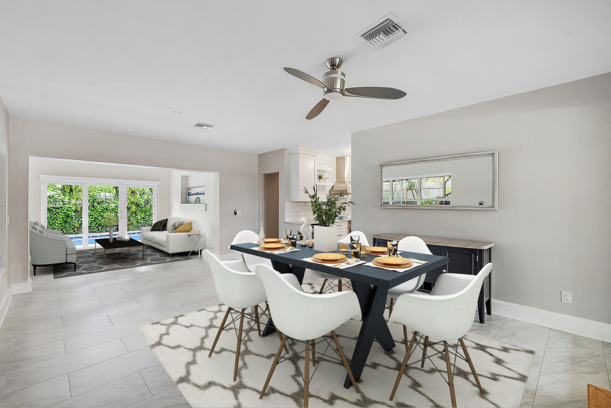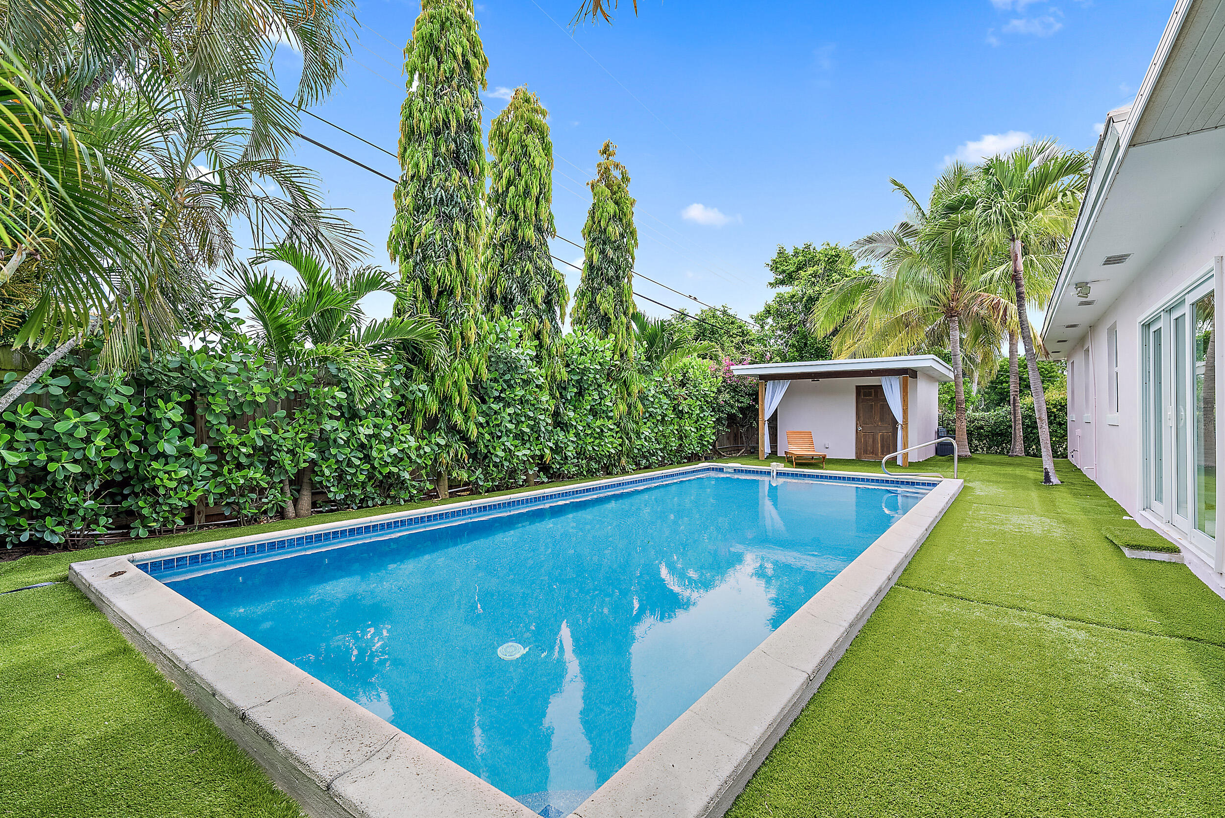 Check out this fabulous Mid-Century Modern Oasis in College Park! Nestled on an 8,250 sq. ft. lot east of Federal Hwy, this exceptional home is a must-see. Boasting 3 beds, 3 baths, & a heated/salt pool, it's a true gem. You'll love the cabana, spacious carport, & open floor plan that makes entertaining a breeze. The renovated kitchen w/ walk-in pantry & the screened-in patio w/ a summer kitchen will delight any culinary enthusiast. Step into your private paradise, complete w/ a fenced backyard, whole-house water filtration system, 2021 AC, 2021 tile roof adorned w/ solar panels, & impact windows for peace of mind. Conveniently located, this home is just minutes away from downtown, charming shops, restaurants, beaches, golf courses & more. This property has been virtually staged. Enjoy access to Bryant Park & boat ramps for endless outdoor adventures. But that's not all! Embrace the urban lifestyle w/ the added perk of being close to West Palm Beach's vibrant downtown, The Square, PBI airport, Brightline station, & Palm Beach Island. This is South Florida living at its finest!