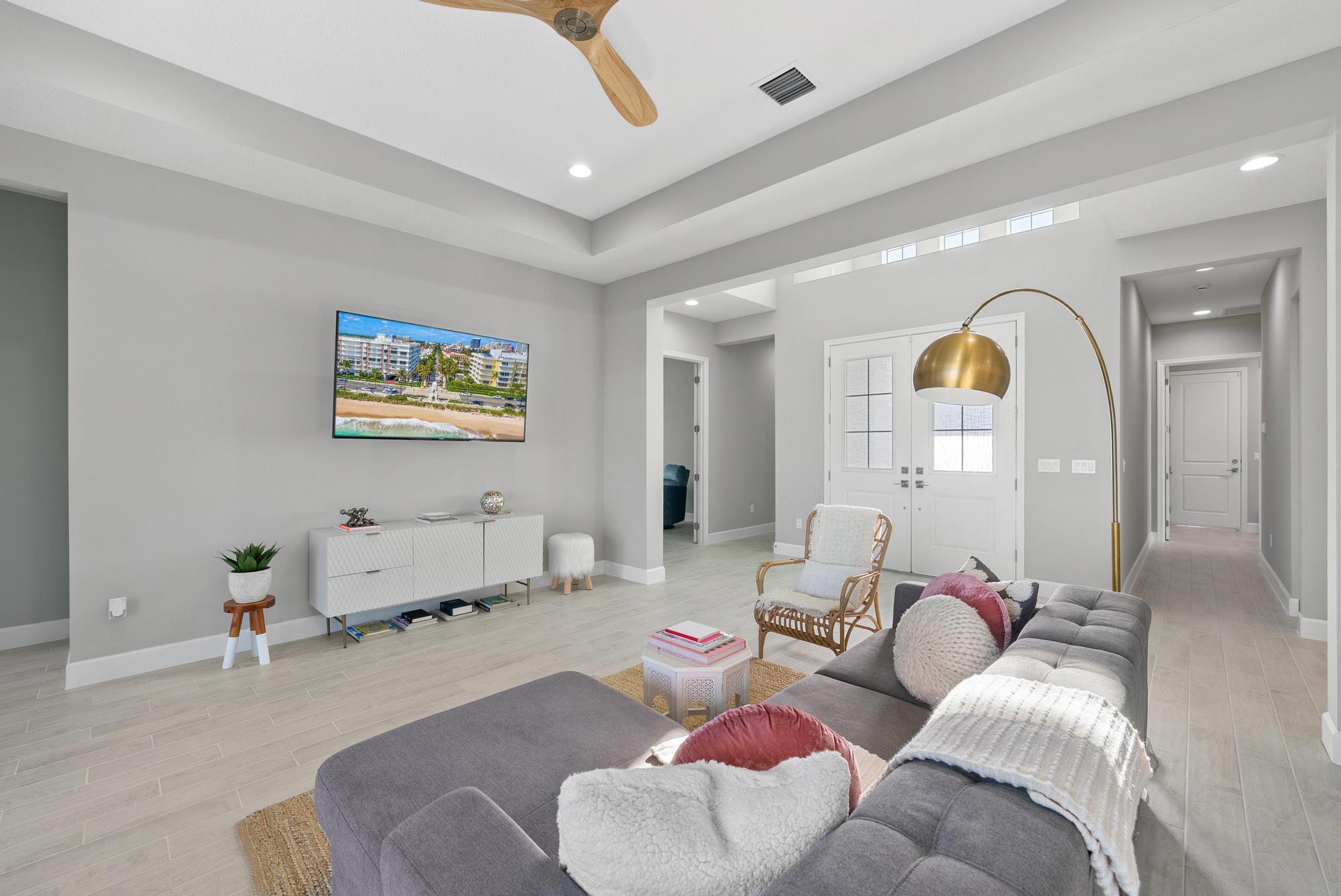 Step into this 2024 Sandhill model--a spacious, upgraded retreat with over 3,000 sq. ft. of total area & $100,000+ in premium upgrades. The gourmet kitchen features quartz countertops, an extended breakfast bar, & floor-to-ceiling cabinetry, complemented by top-tier appliances. Garage new epoxy floor 2026! Expansive living areas, a formal dining room, & a screened extended patio make this home ideal for entertaining. The versatile den/office can serve as a 4th bedroom, & impact windows provide security & peace of mind. Located in a resort-style gated community, you'll enjoy access to a clubhouse, resort pool, state-of-the-art fitness center, & the Westlake Adventure Park. Zoned for top-rated schools, with exciting new retail, dining, & lifestyle conveniences just minutes away.
