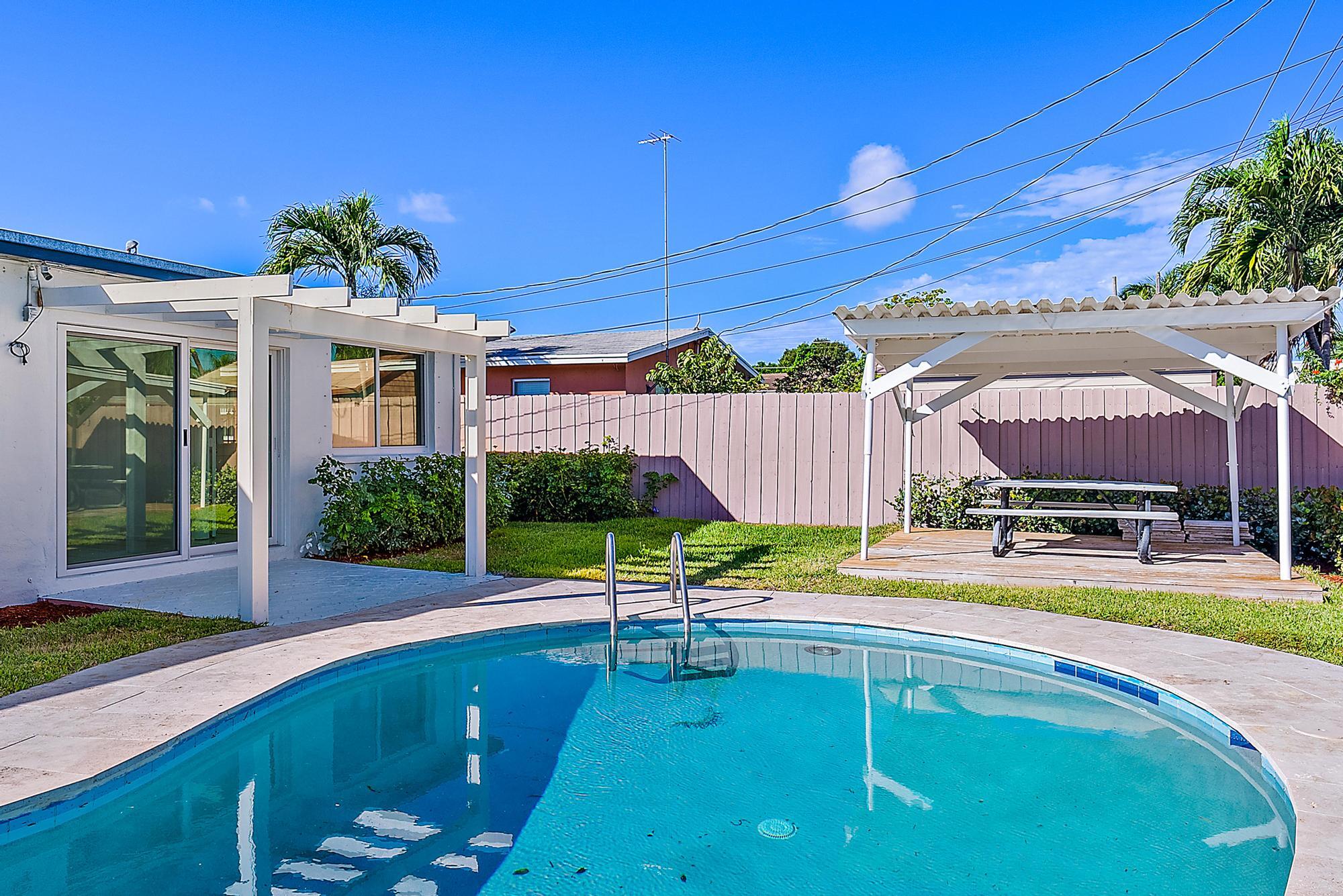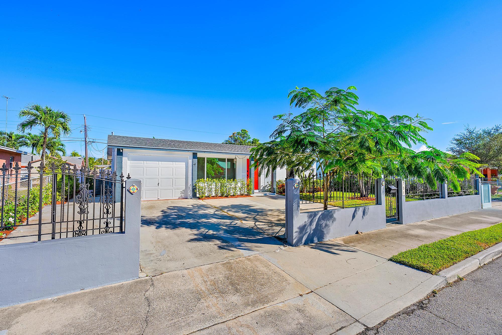 Check out this charming West Palm Beach Home with an Inviting Swimming Pool. This delightful residence boasts 3 bedrooms, 2 bathrooms, all impact windows, a 2018 roof, 2022 AC, 2024 water heater, neutral tile flooring throughout, an updated kitchen with sleek stainless-steel appliances, newly painted interior/exterior, a fully fenced property, covered front porch & a garage. Ideally situated east of I-95 in coastal West Palm Beach, this home places you conveniently close to a thriving culinary scene, beautiful beaches, Downtown WPB, Palm Beach Island, The Square, Grandview Public Market, PB Zoo + Science Center/Aquarium, Norton Museum, Kravis Center, PBI Airport, Brightline Station, & much more! This property has been virtually staged.